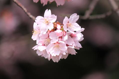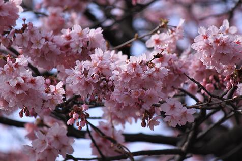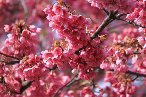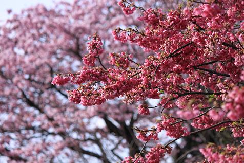 手前 寒緋桜 奥 彼岸桜